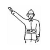 #14. Znak sygnalizacyjny „Prawa ręka odchylona w bok w górę” oznacza: