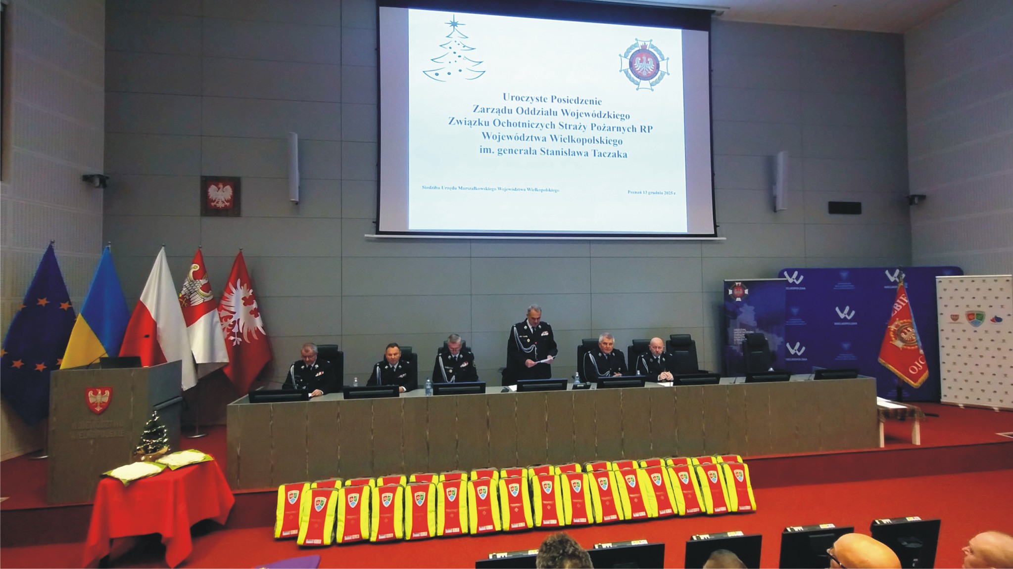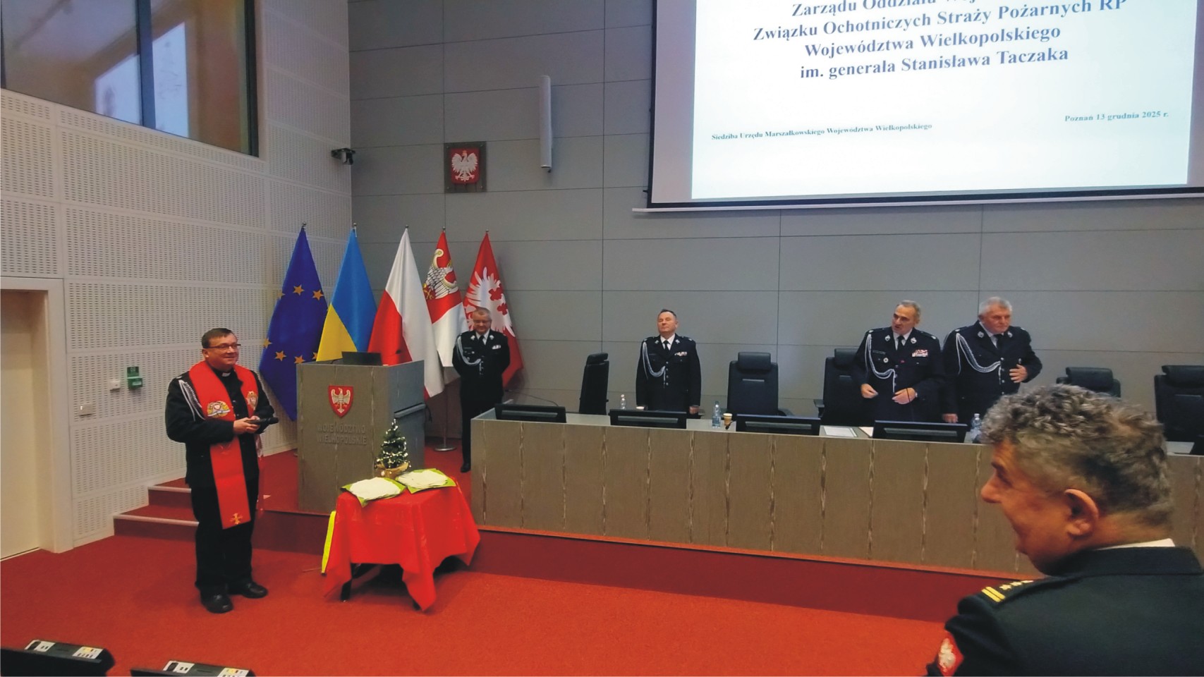 13 grudnia 2025 r. w Sali Narad Urzędu Marszałkowskiego odbyło się Uroczyste Posiedzenie Zarządu Oddziału Wojewódzkiego ZOSP RP Województwa Wielkopolskiego, im. gen. Stanisława Taczaka – z okazji 107. rocznicy Powstania Wielkopolskiego oraz 104. rocznicy zjednoczenia Związku Straży Pożarnych. Uroczystości rozpoczęły się mszą św. celebrowaną przez Abp Zbigniewa Zielińskiego. Następnie Dowódca Uroczystości – dh Andrzej Woźnicki, przeprowadził Kolumnę złożoną z Pocztów Sztandarowych OSP i strażackich pododdziałów w okolice Cmentarza Zasłużonych, gdzie delegacja pod przewodnictwem Prezesa Zarządu OW ZOSP RP w Poznaniu – dh Eugeniusza Grzeszczaka złożyła wiązankę kwiatów na grobie śp. gen. Stanisława Taczaka. Dalej, Kolumna przemieściła się pod gmach Urzędu Marszałkowskiego, gdzie odbyła się robocza część posiedzenia. Uroczystość uświetniła Orkiestra Dęta z Kamienia, gm. Ceków. W uroczystościach Wojewódzką Komisję Ds. Młodzieży, Kobiecych Drużyn Pożarniczych, Kultury i Sportu reprezentowali: Wiceprzewodniczący Komisji – dh Bogdan Siwiński oraz członkini Komisji – dh Monika Szymańska