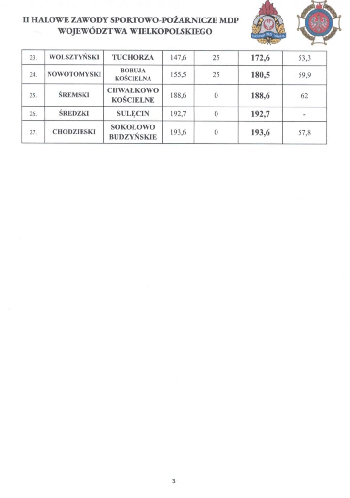 II Wojewódzkie Halowe Zawody Sportowo Pożarnicze Młodzieżowych Drużyn Pożarniczych