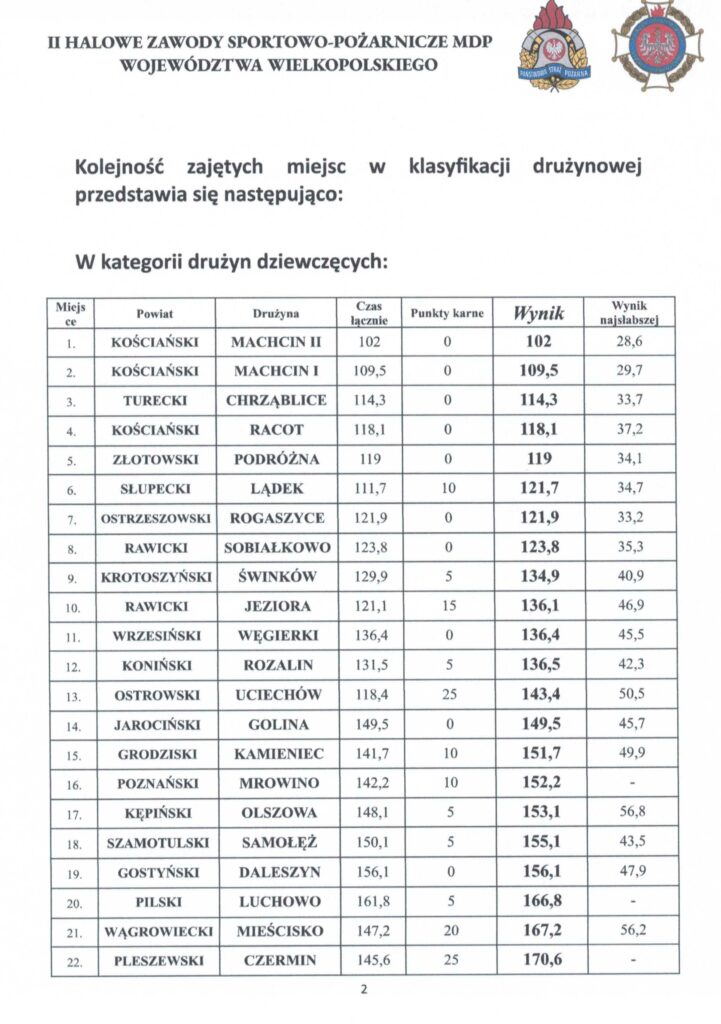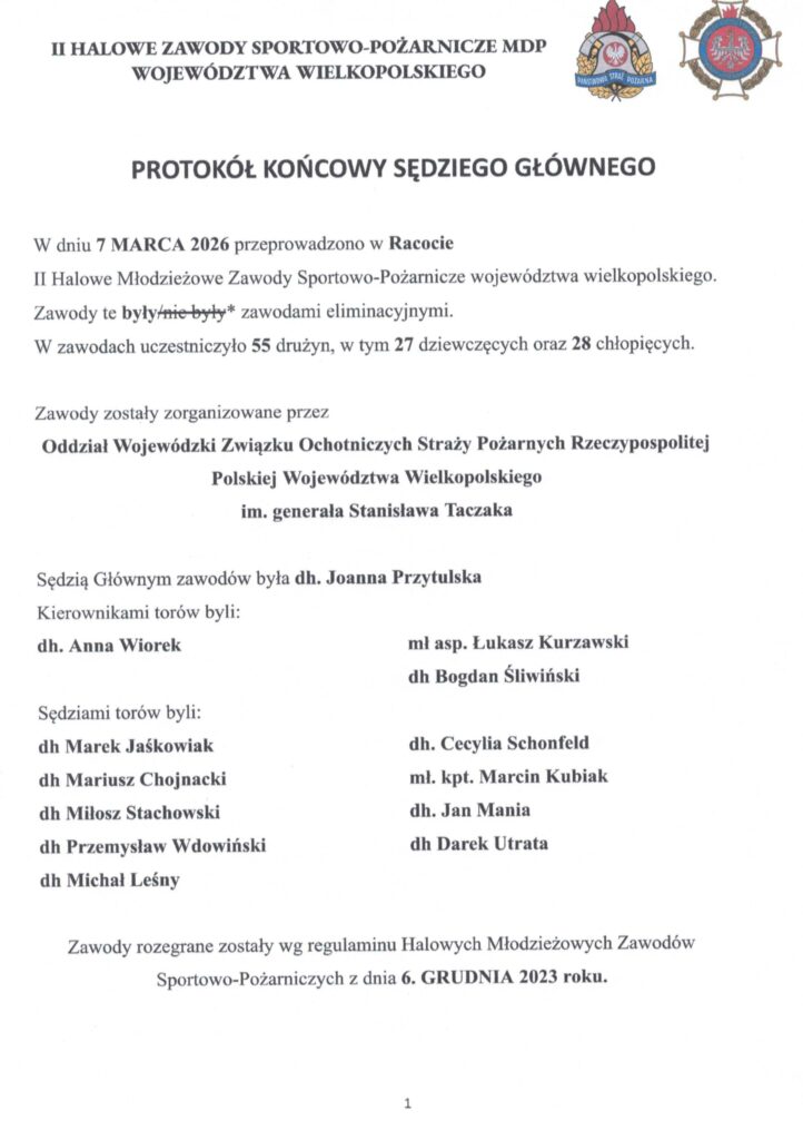 W dniu 07 marca 2026 r. w sali sportowej w Racocie odbyły się II Wojewódzkie Halowe Zawody Sportowo Pożarnicze Młodzieżowych Drużyn Pożarniczych.