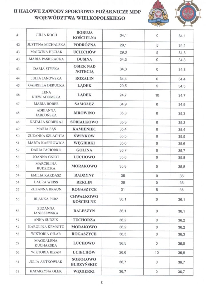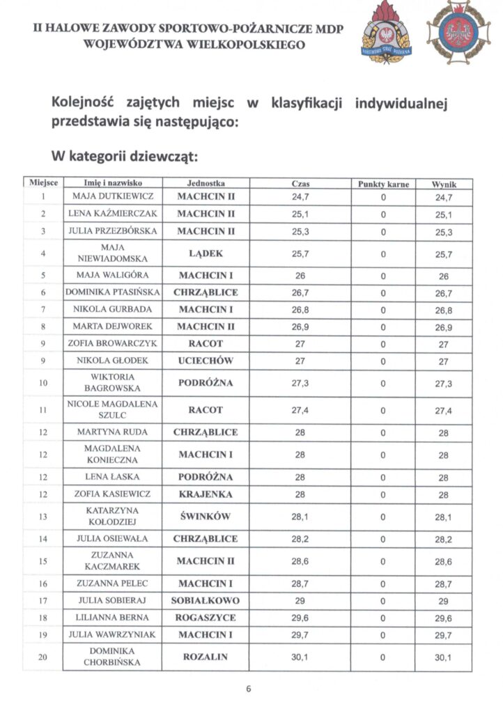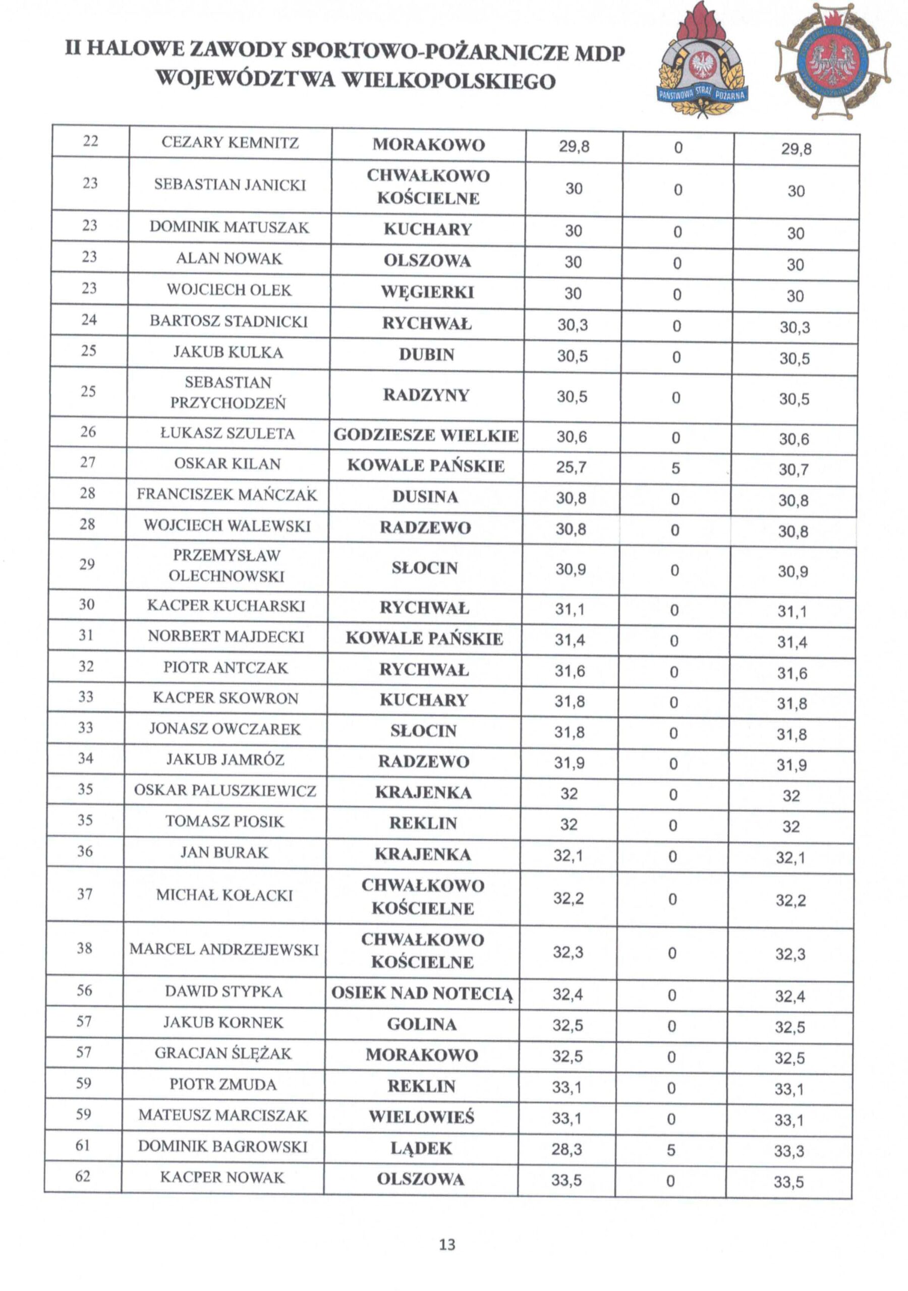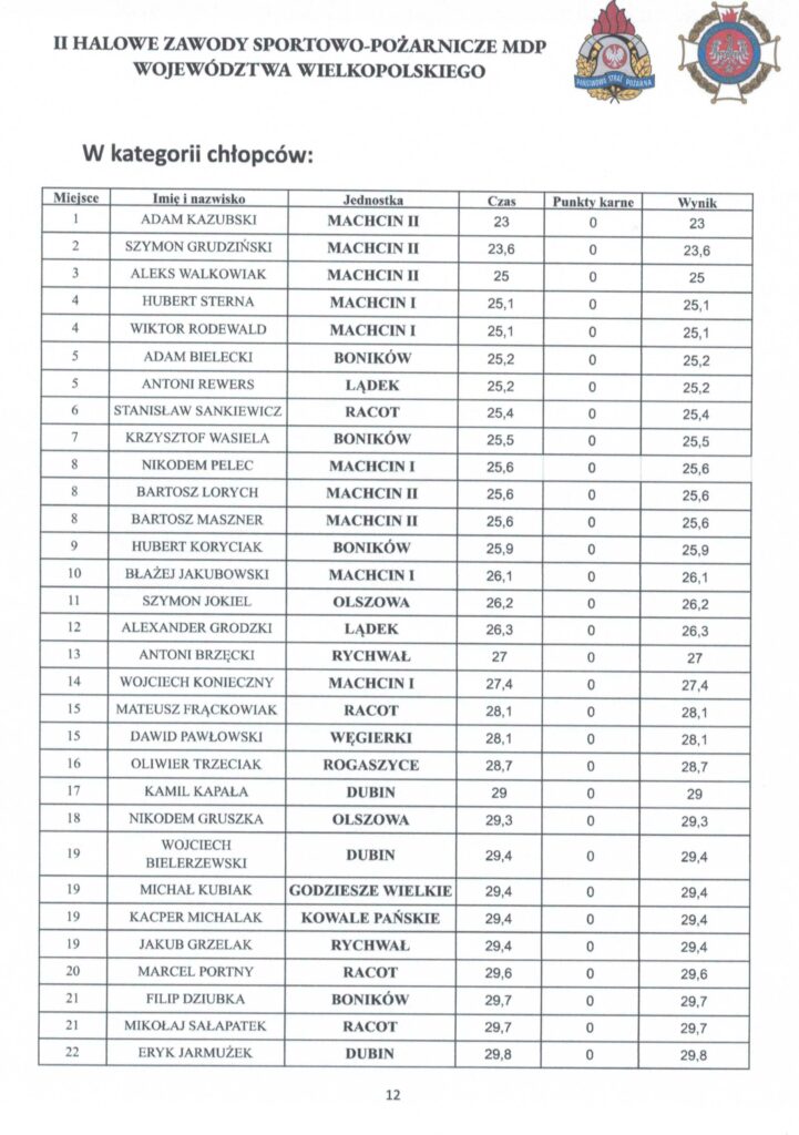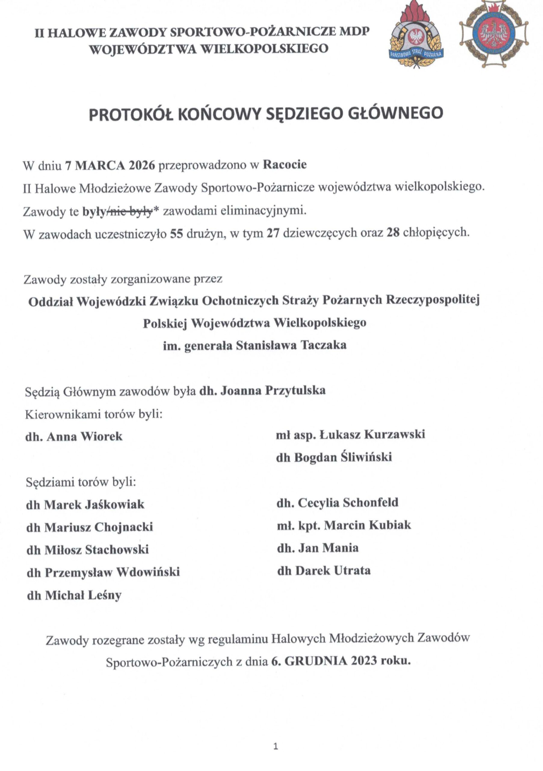 W załączeniu protokół Sędziego Głównego zawierający szczegółowe wyniki Zawodów.
