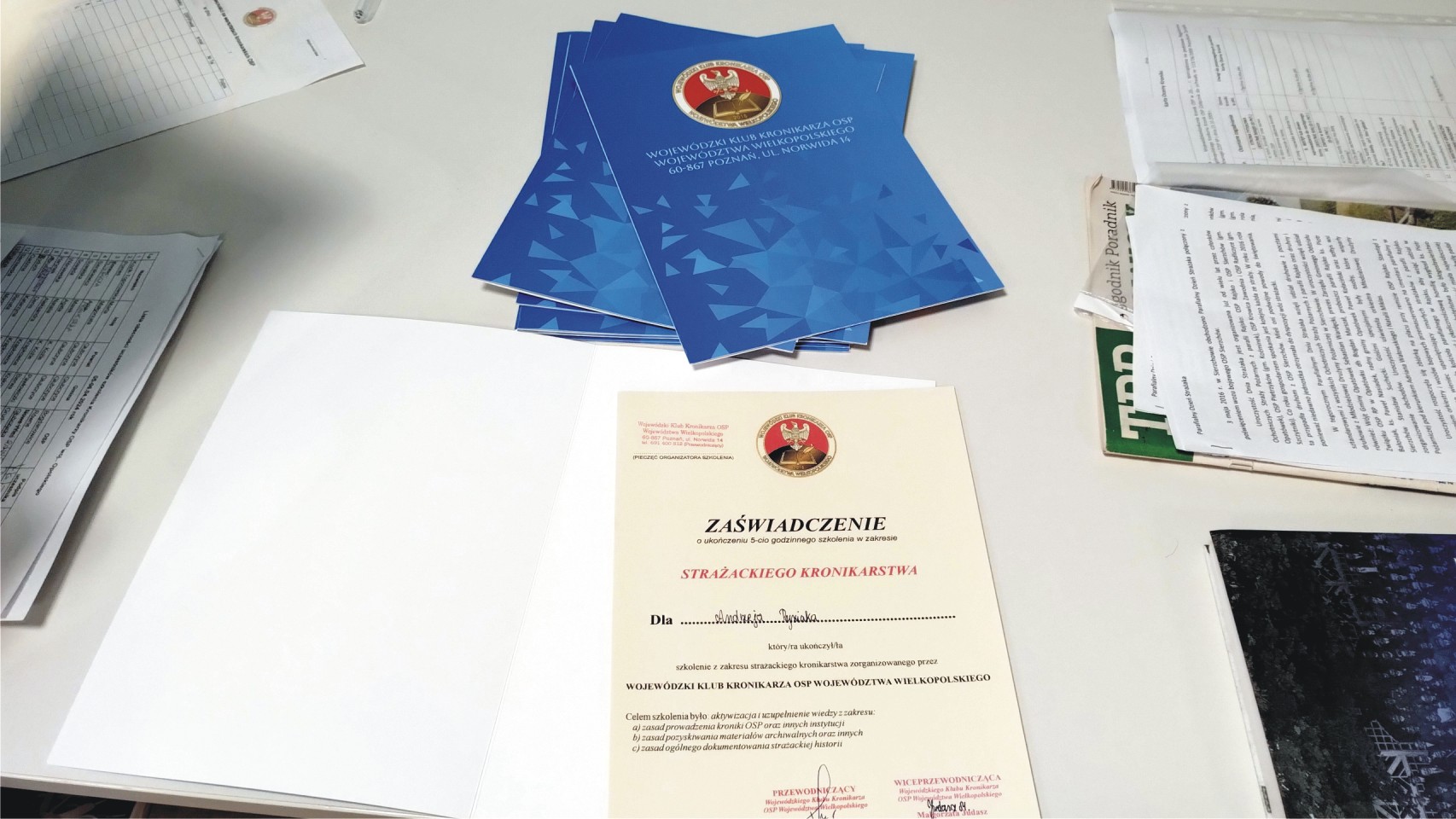 Przedstawiciele Wojewódzkiego Klubu Kronikarza OSP Województwa Wielkopolskiego szkolą poza Wielkopolską